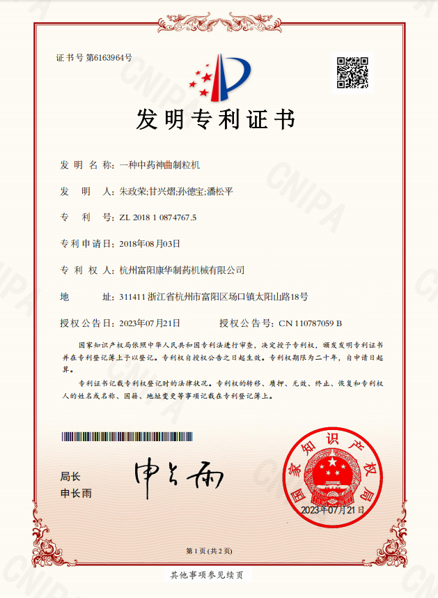 杭州富陽(yáng)康華制藥機(jī)械有限公司(初創(chuàng)于2001年, 2004年后更名為:杭州富陽(yáng)康華機(jī)械設(shè)備廠),是集產(chǎn)科研一體化的中藥材前處理及飲片加工設(shè)備制造企業(yè)。公司秉承以產(chǎn)品質(zhì)量為基礎(chǔ)、客戶服務(wù)為向?qū)А⒖蒲袆?chuàng)新為后勁的宗旨,在企業(yè)高速發(fā)展的同時(shí),著力打造新產(chǎn)品研發(fā)中心,以開(kāi)發(fā)現(xiàn)代、新穎設(shè)備為重任,確保產(chǎn)品立于行業(yè)先進(jìn)行列,企業(yè)已擁有70余項(xiàng)專利...